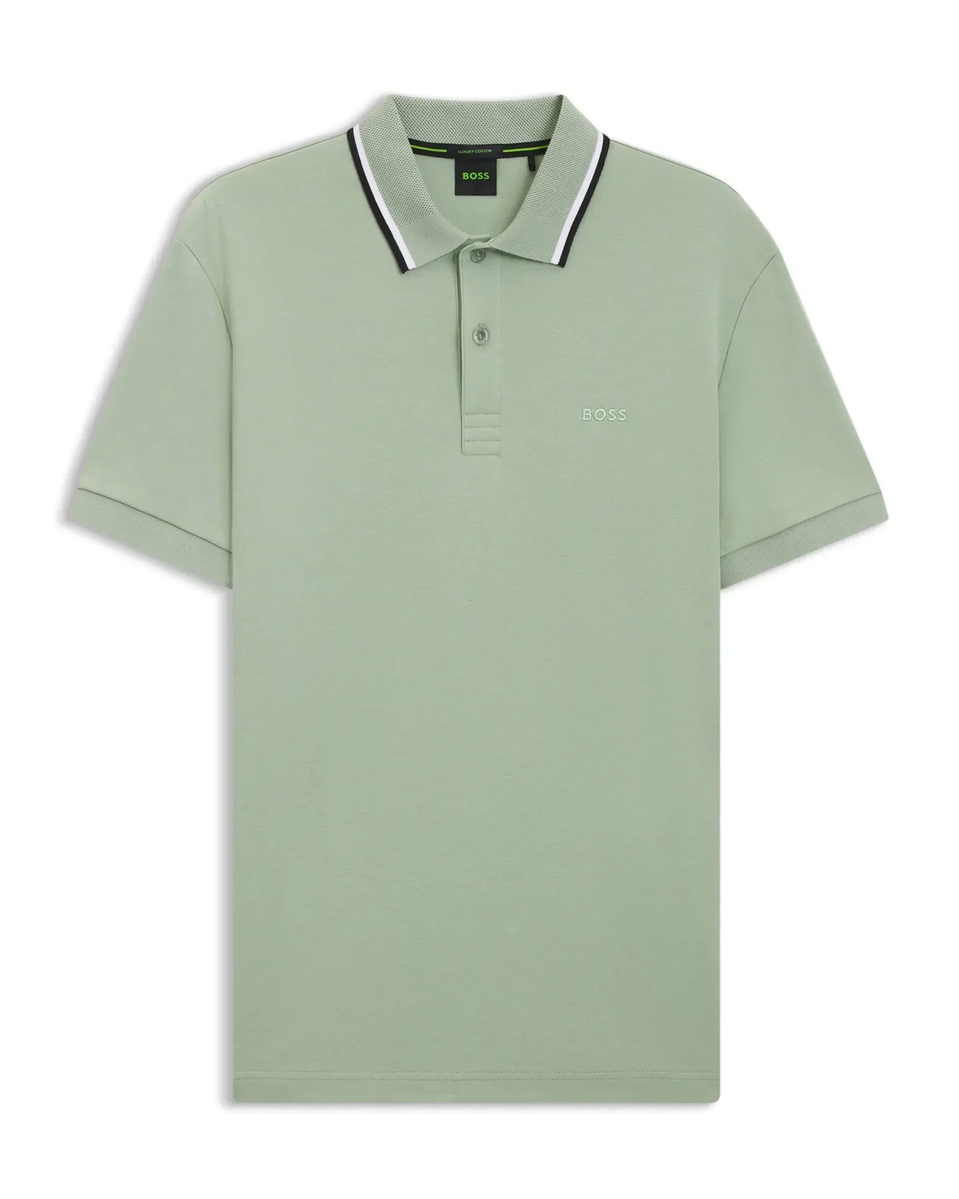 With a slim profile in interlock cotton, this BOSS Menswear polo shirt will quickly become a favourite. Collar with structure and stripe details. Embroidered logo.